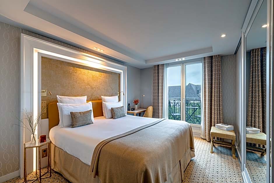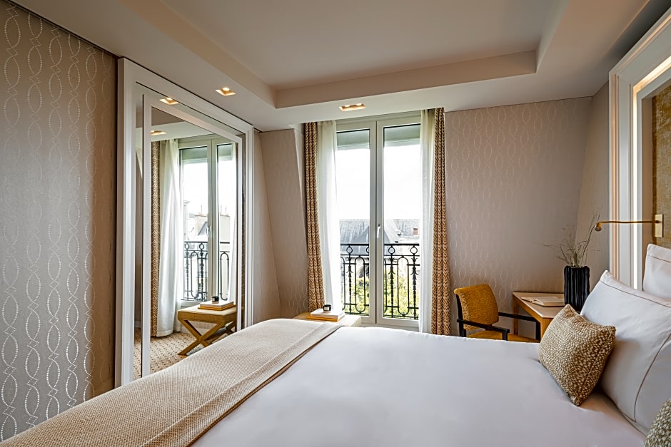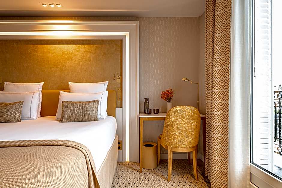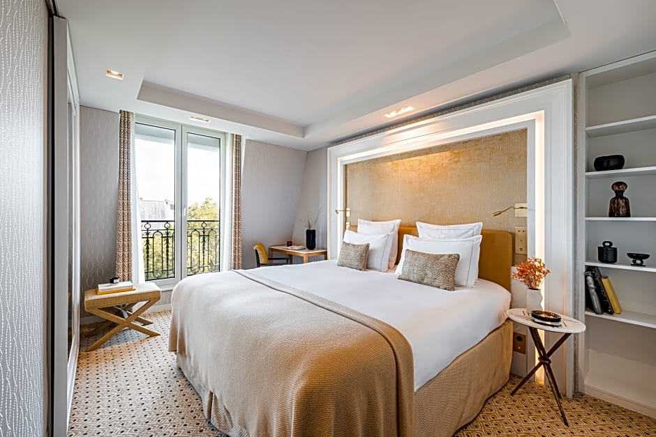 Deluxe View St Sulpice is 301 square feet and includes a queen-size bed 150-154 width.